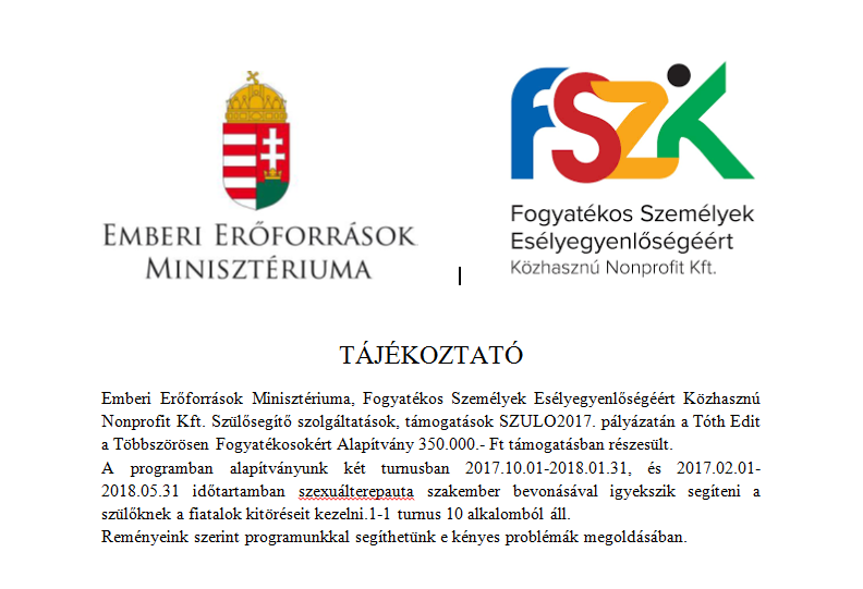 Nyíregyháza Megyei Jogú Város Közgyűlésének Városstratégiai és Környezetvédelmi Bizottságának a "Fogyatékos gyermekek/fiatalok és egészséges testvéreiknek integrált részvétellel élményterápiás program" keretén belül Alapítványunk megvalósított Közösségi Napja
